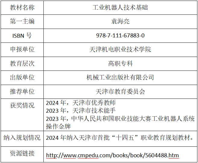 第二批“十四五”職業教育國家規劃教材申報展示《工業機器人技術基礎》