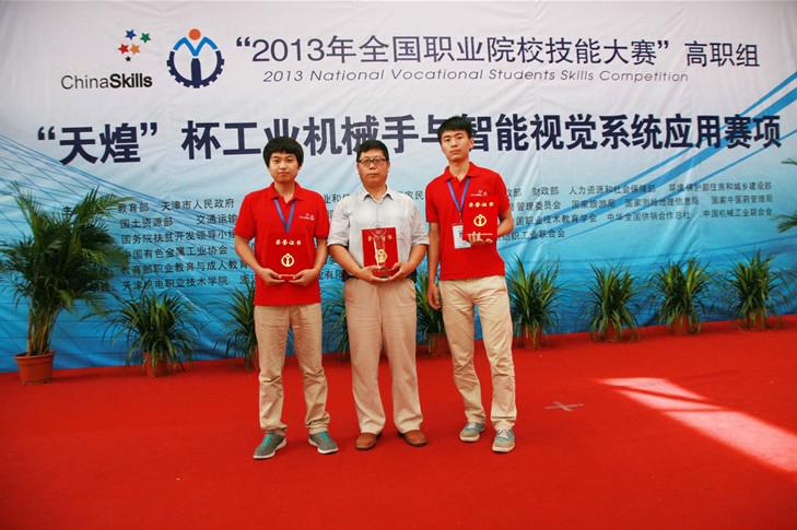 我系機電一體化技術專業學生楊鑫磊、劉斌在教師張紹忠的指導下獲得2013年全國技能大賽“工業機械手與智能視覺系統應用”賽項全國一等獎