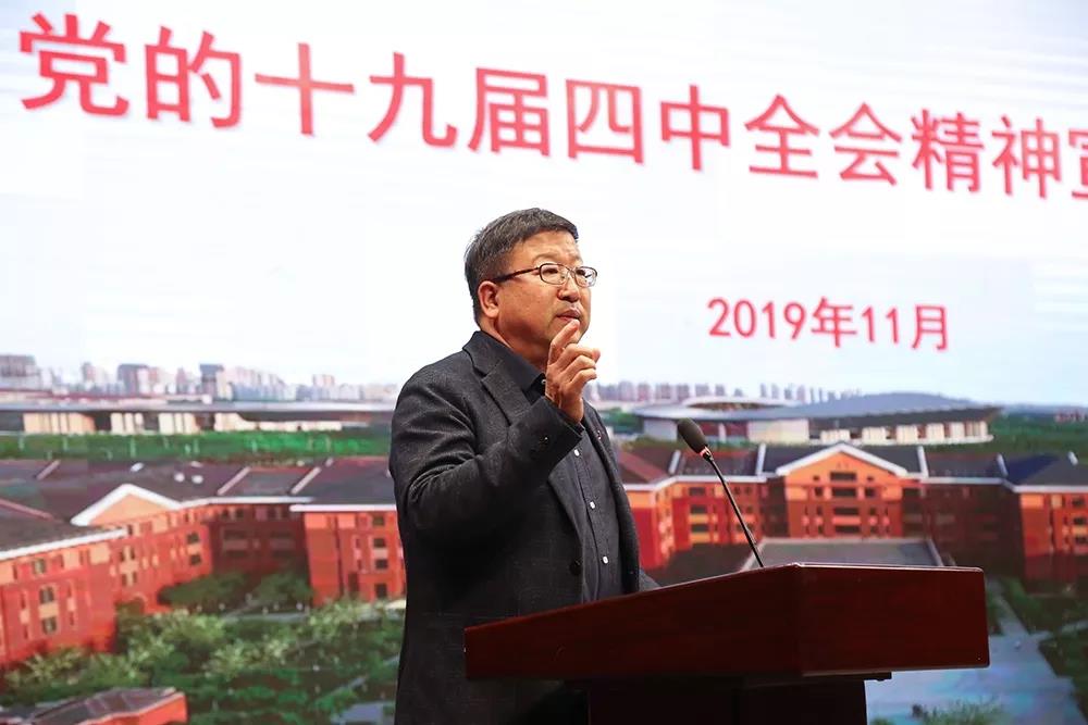 為深入學習宣傳貫徹黨的十九屆四中全會精神,11月27日,學校召開黨的十九屆四中全會精神宣講報告會。大會由校長張維津主持,黨委書記王千文做了黨的十九屆四中全會精神宣講報告。