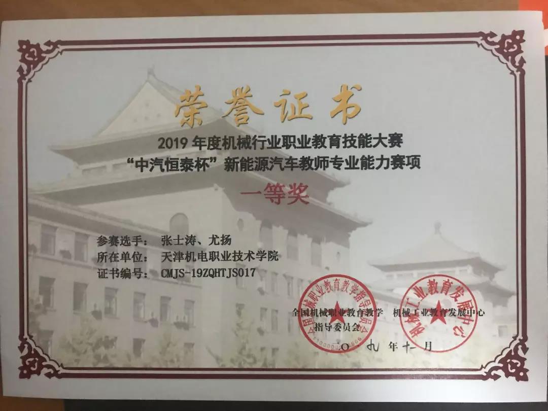 11月16日-17日,2019年度機械行業職業教育技能大賽-“中汽恒泰杯”新能源汽車專業教師能力大賽順利閉幕,我校機械學院張士濤、尤揚兩位老師代表學校參賽,榮獲一等獎第二名。