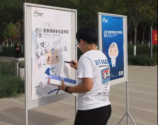 9月17日,師生志愿者組織進行了以“網絡安全為人民 網絡安全靠人民”為主題的簽名活動,并組織學生參與網絡安全知識競賽答題。