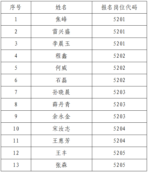 經報名與資格審查,以下考生符合招聘崗位基本資格條件,進入資格復審環節: