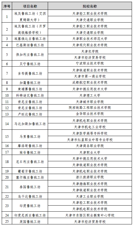 全國首批魯班工坊運營項目名單