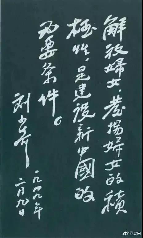 1949年2月9日,劉少奇為中國婦女第一次全國代表大會題詞。